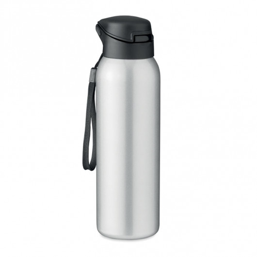 Мінімалістичний дизайн втілюється в гладкій чорній матовій поверхні з алюмінію, що додає виробу сучасного та стриманого вигляду. Цей матеріал відомий своєю міцністю та здатністю зберігати напої холодними або гарячими протягом тривалого часу. Завдяки пластиковій кришці, пляшка герметично закривається, забезпечуючи вас від випадкового проливання. Крім того, наявність зручного ремінця дозволяє легко переносити пляшку з собою.