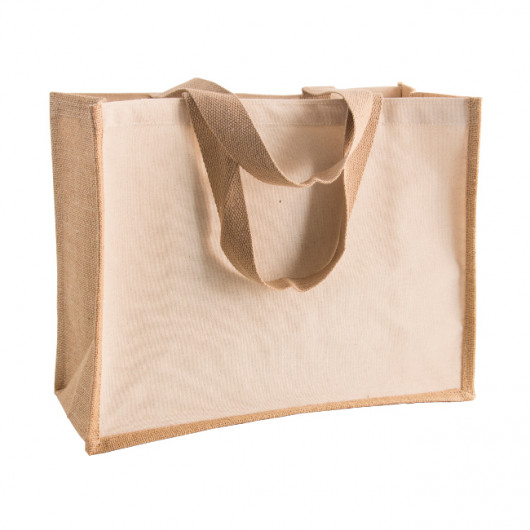 )Екосумки з бавовни з бічною частиною з канвасу, розмір 42х19х33 см. Довжина ручок – 50 см.