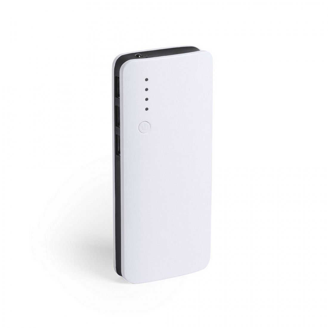 )Зовнішній акумулятор для заряду портативних пристроїв ємністю 10000 mAh. Тип акумулятора – Li-Ion. Зарядка від USB. Має 3 USB виходи, 1 світлодіод, вхід micro USB. Розмір 6 x 14 x 2,2 см.