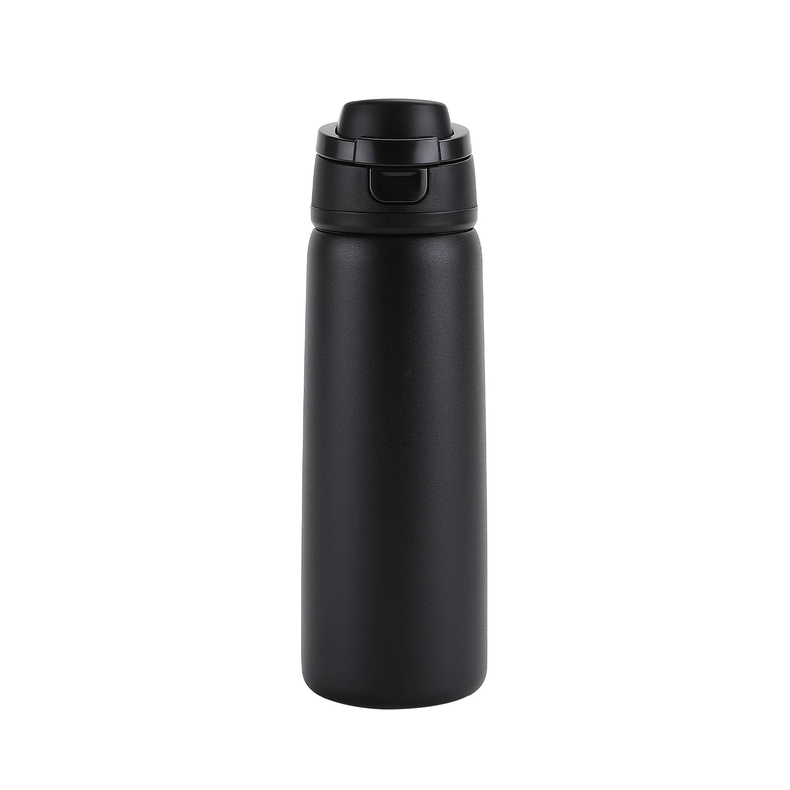 )Термопляшка з подвійною стінкою з нержавіючої сталі та вакуумною кришкою з кнопкою блокування.