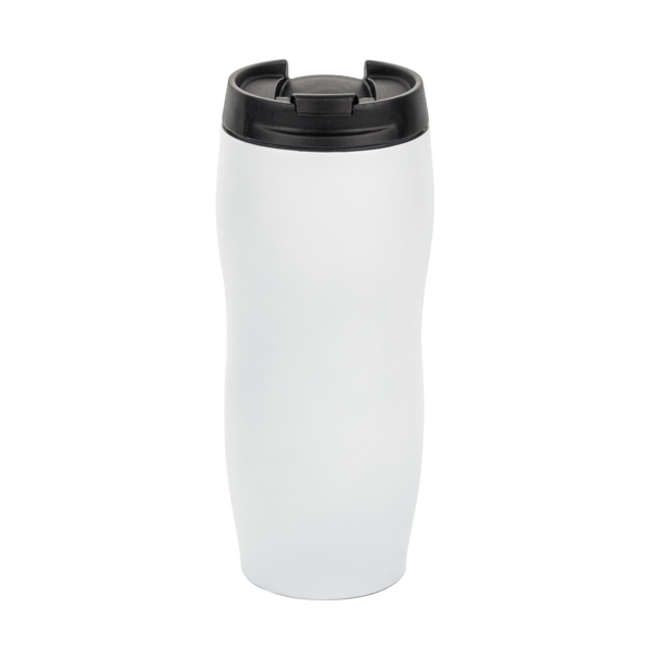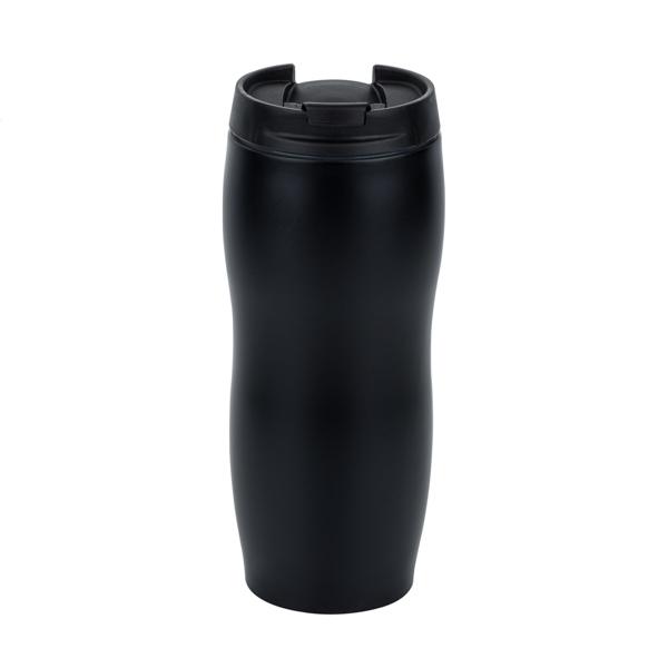 )Термокружка з подвійною стінкою. Нержавіюча сталь всередині та зовні. Герметична пластикова кришка, що загвинчується, із вбудованим отвором для пиття.