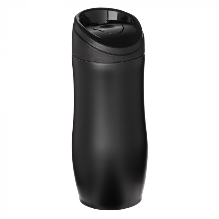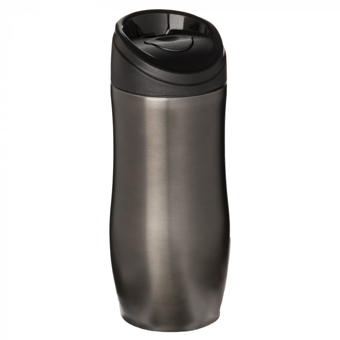 )Термокружка з подвійними стінками. Всередині і зовні виготовлена з нержавіючої сталі. Зберігає температуру напою. Кришка відкривається і закривається натисненням кнопки. Об’єм: 350 мл. Розміри виробу (мм): Ширина: 75 Висота: 190.