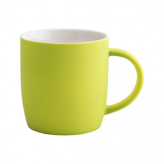 )Чашка порцелянова з матовим кольоровим покриттям soft-touch. Стильна матова чашка із кольоровим soft-touch покриттям та контрастною білою глянсовою серединкою – трендовий дизайн у всьому світі. Добре збалансований корпус зі зручною ручкою і вдале поєднання кольорів вигідно відрізняє цю модель серед інших. На поверхню чашки можна нанести логотип, рекламний слоган або бренд за допомогою гравіювання або тамподруку. Найкраще виглядатиме, якщо зображення буде того ж кольору, що і яскрава серединка. Об’єм-320 мл. Діаметр верхній-80 мм. Діаметр нижній-80 мм. Висота-100 мм.