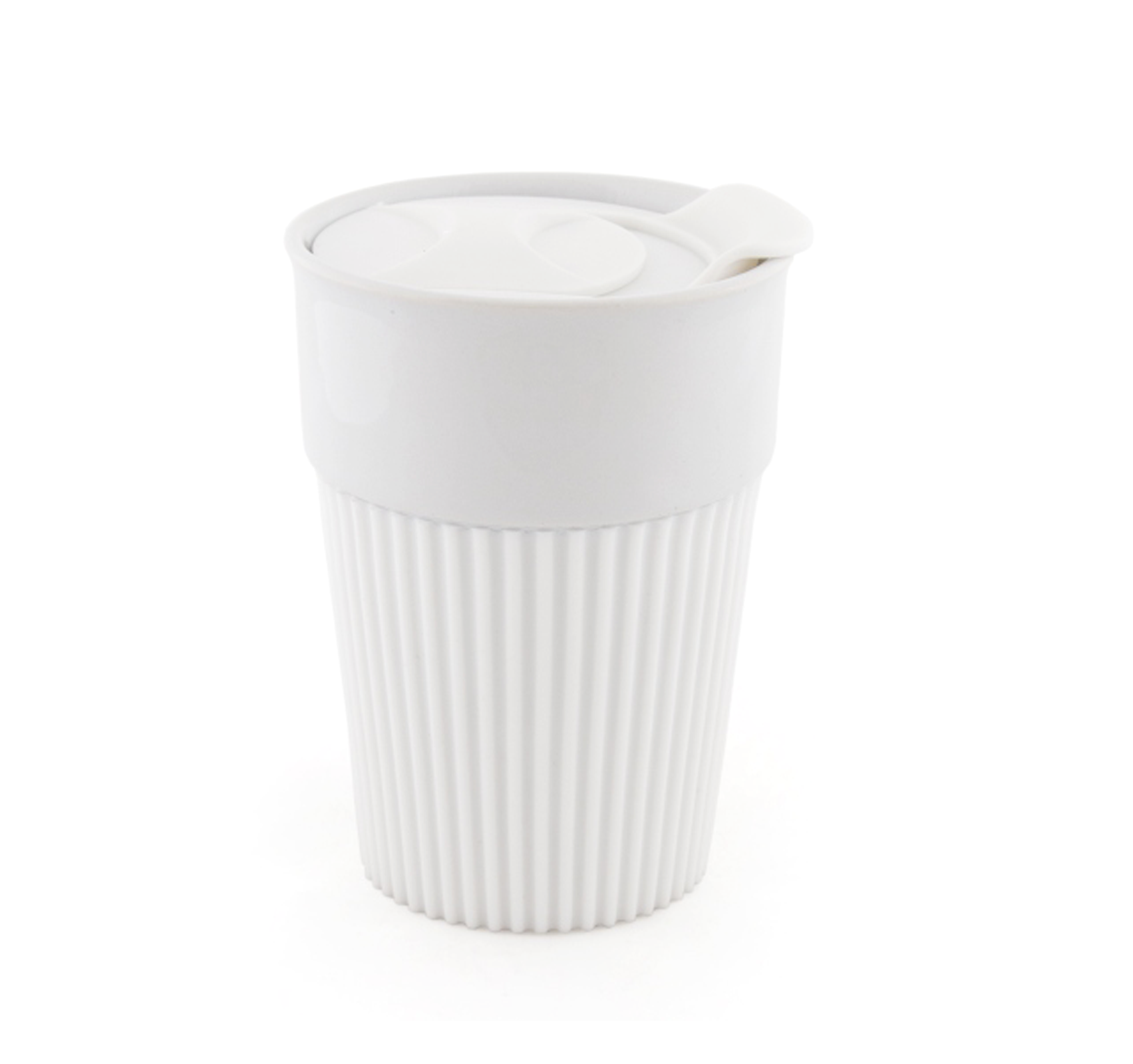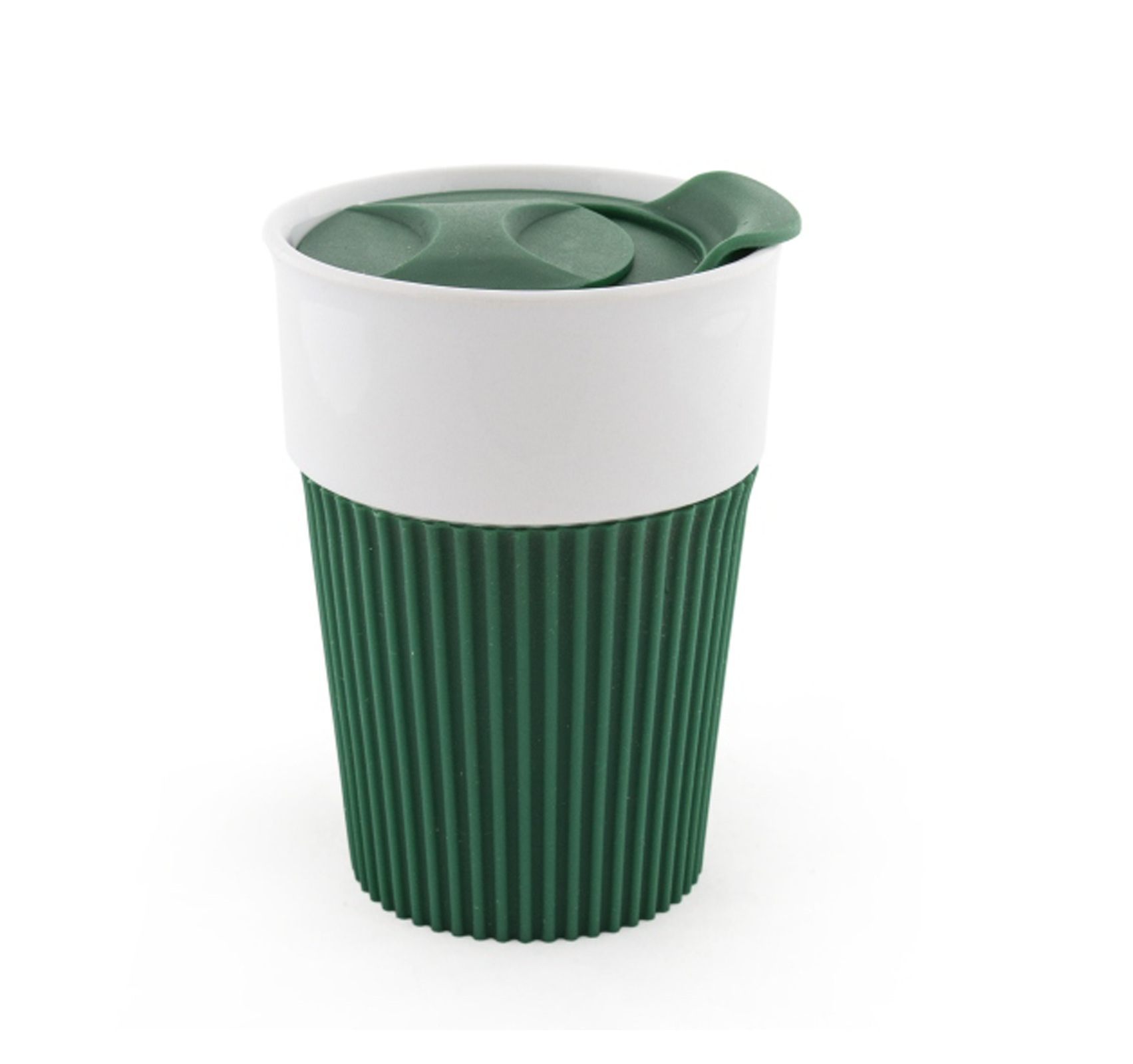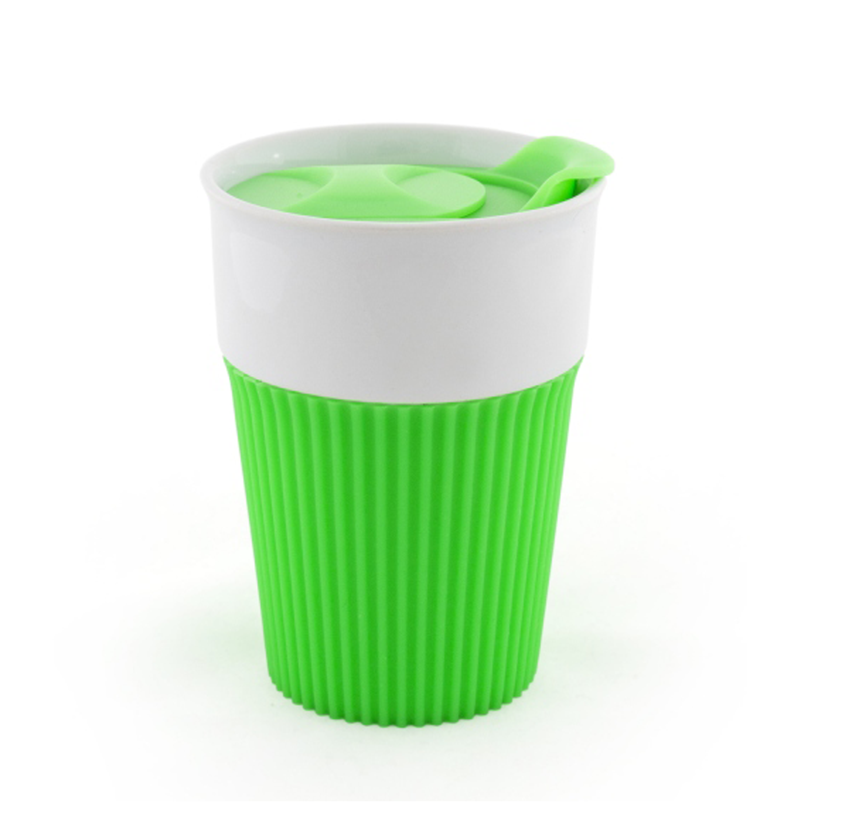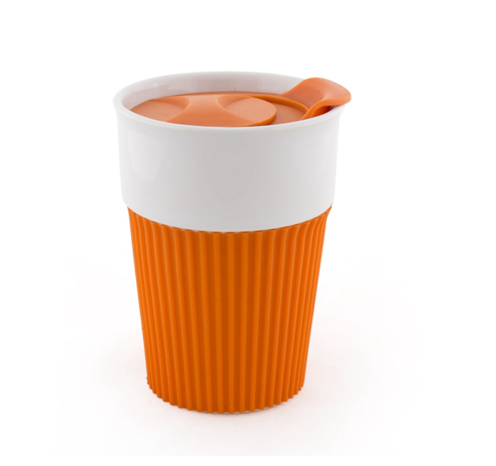 )Керамічна чашка – новинка минулого і бестселер цього сезону. Ця модель чашки відрізняється теплоізоляційними властивостями спеціальної силіконової накладки і кришечки, які є в комплекті з чашкою. Завдяки кришці напій довго залишається теплим і не розбризкується при ходьбі та в автомобілі, а силіконова накладка не обпалює і не дозволяє чашці ковзати в руках. Розмір: діаметр верхній 90 мм., діаметр нижній 60 мм., висота 125 мм.
