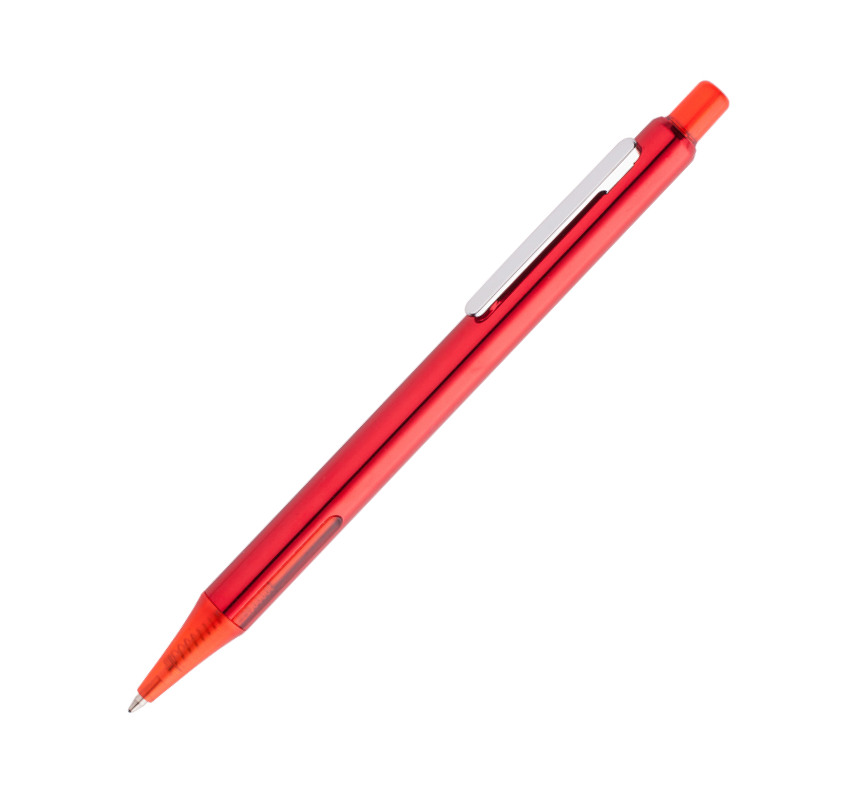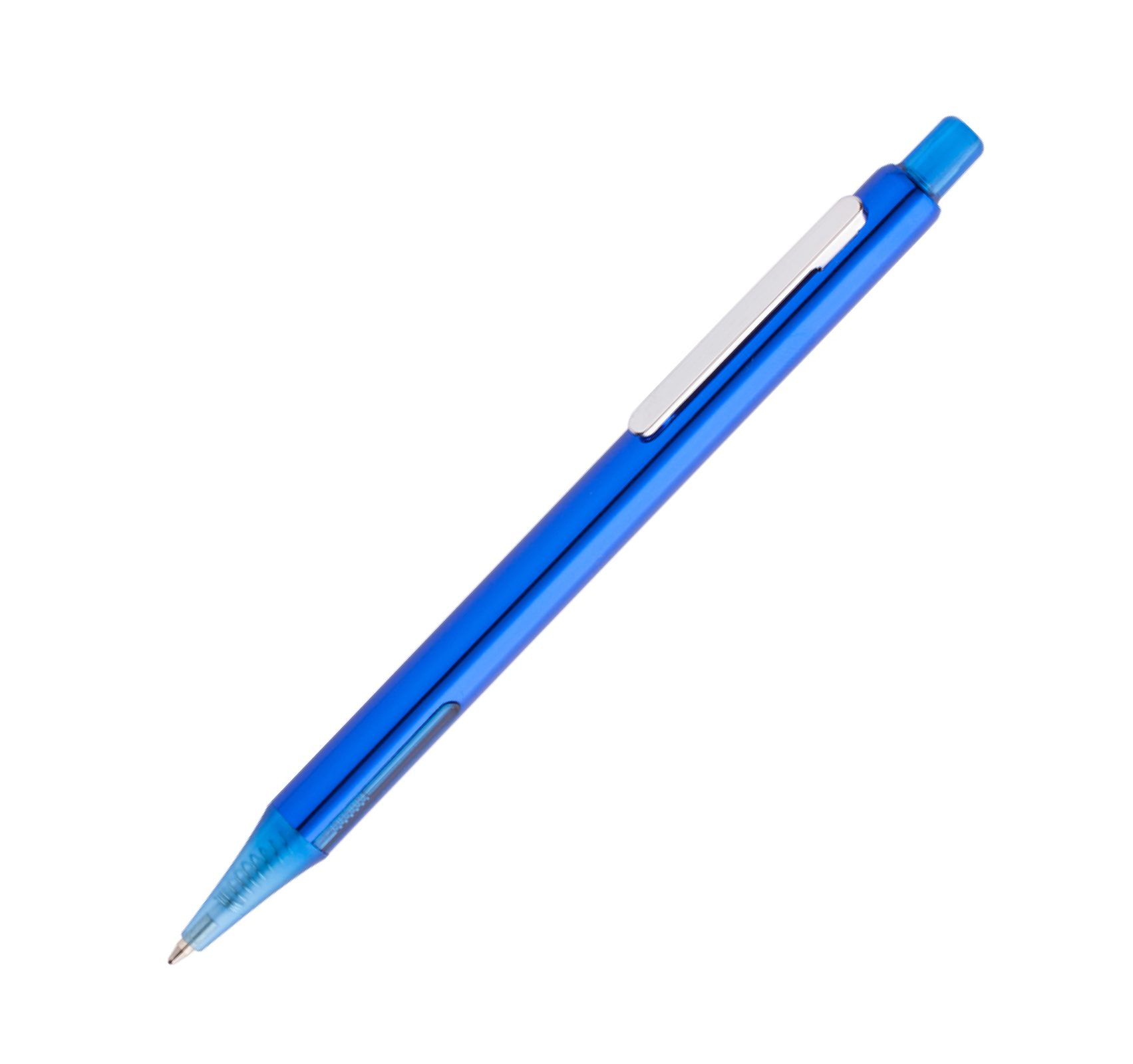 )Ручка кулькова, металева, глянцева. Стержень з синім чорнилом.