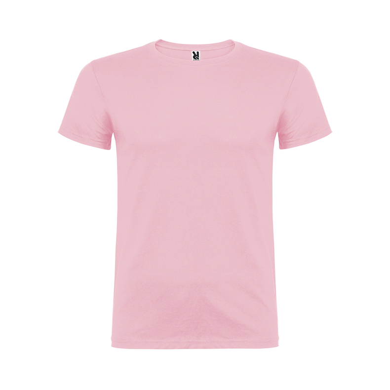 )Футболка дитяча з короткими рукавами та подвійною круглою горловиною з еластаном. Трубчаста тканина в розмірах для дорослих і бокові шви в розмірах для дітей. Посилені закриті шви горловини. Щільність – 155 г/м.кв.