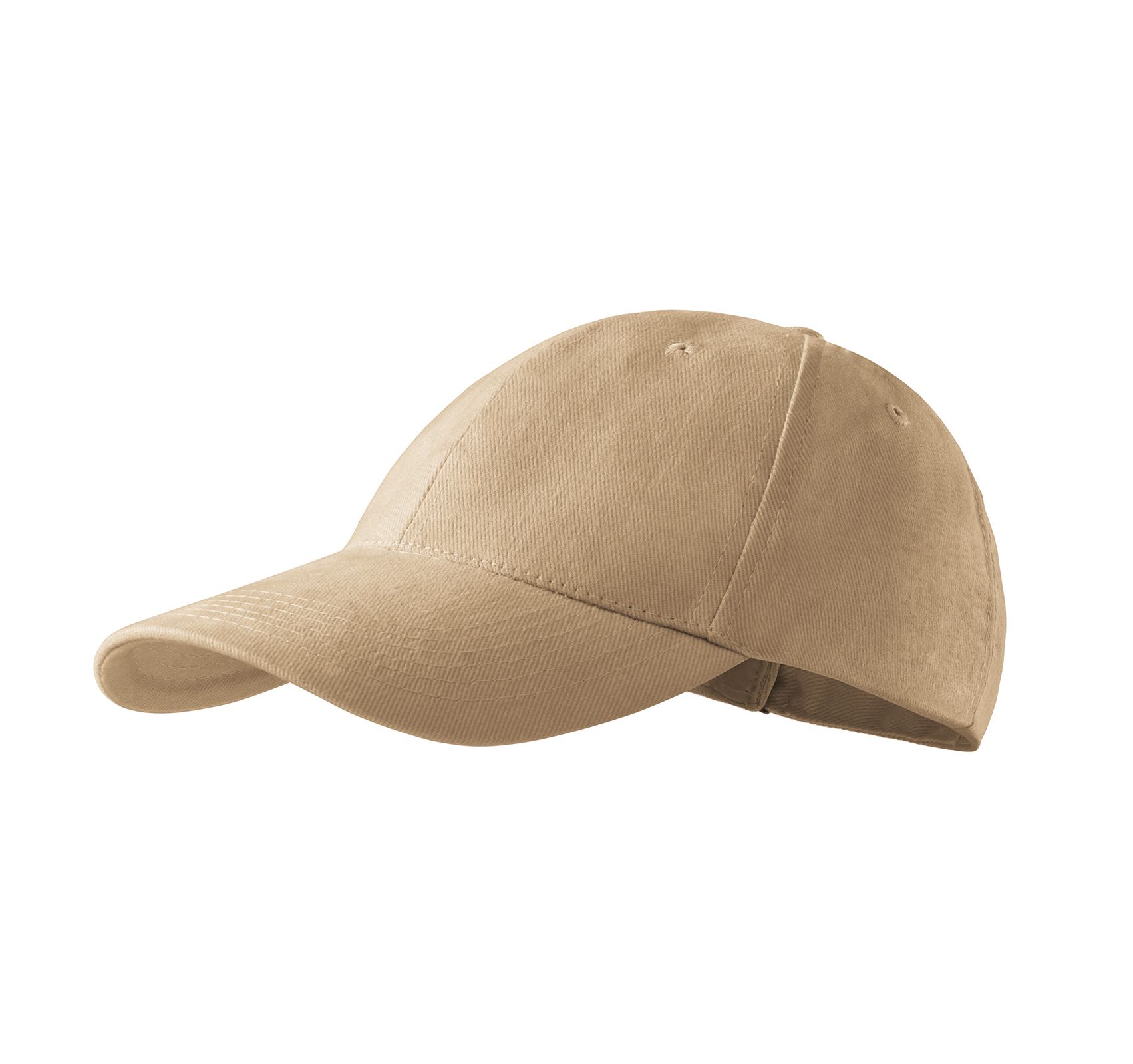 Кепка 100% бавовна з 6-ти клинами, отворами для вентиляції; козирок – жорсткий; застібка – металева. Щільність тканини – 340 г/м2.