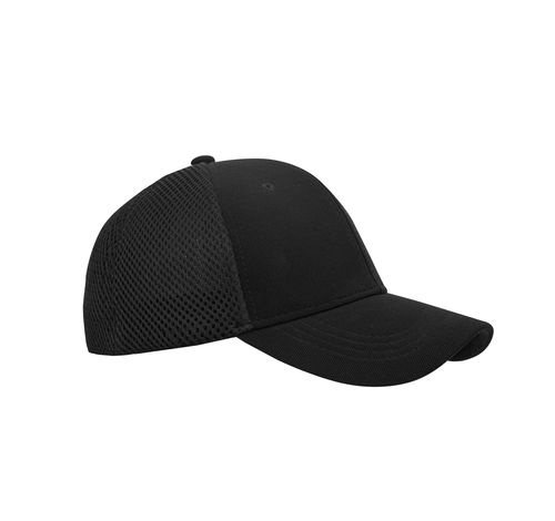 )Кепка T-7051 під нанесення логотипу. Синтетика з 6-ти клинами козирок жорсткий, застібка-липучка. Передня частина кепки фактурний поліестер, задня частина: м’яка синтетична дихаюча сітка.