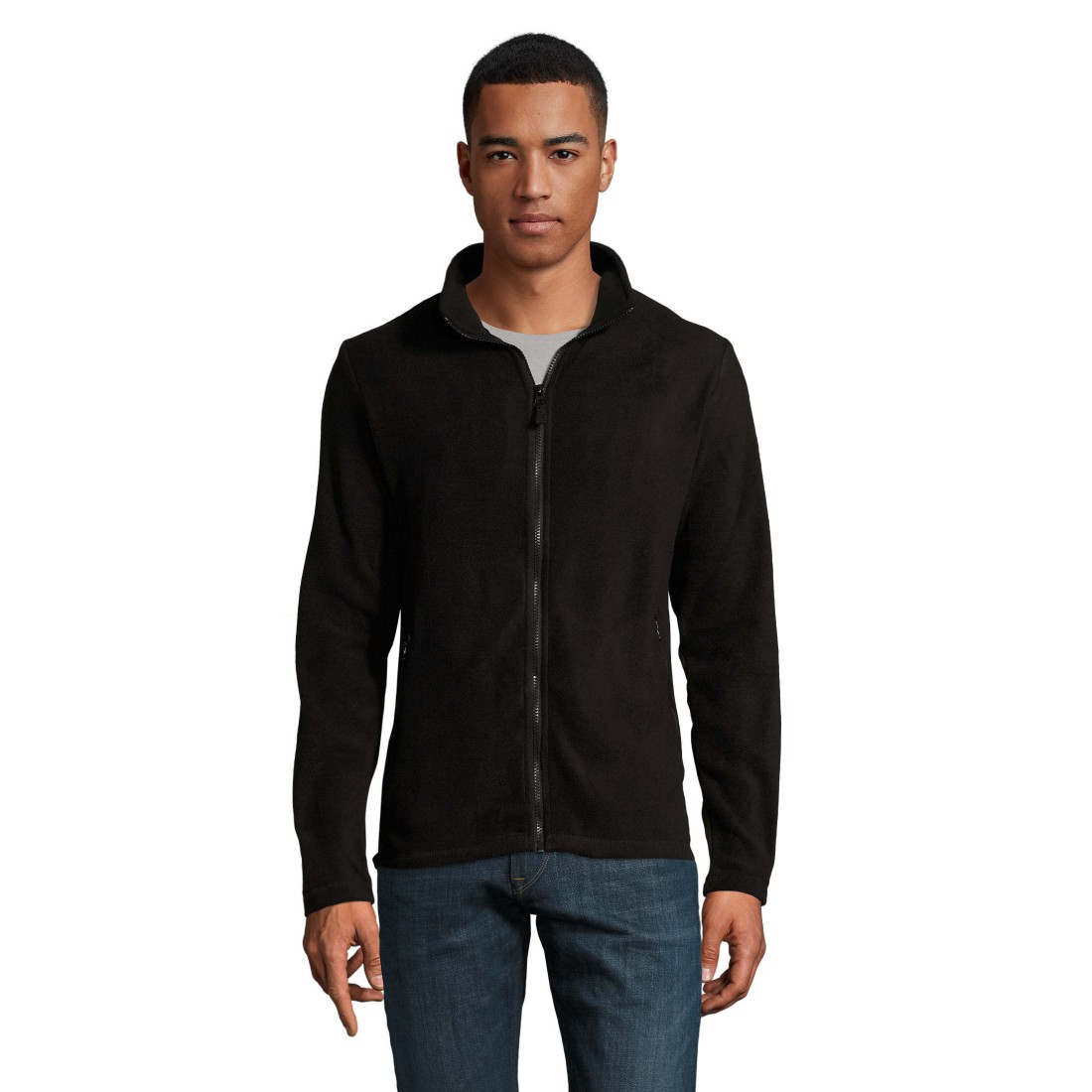 )Однотонна чоловіча куртка з флісу. Комір-стійка на блискавки, 2 кишені на блискавках. Кроєний трикотаж. Фліс. 100% поліестер.