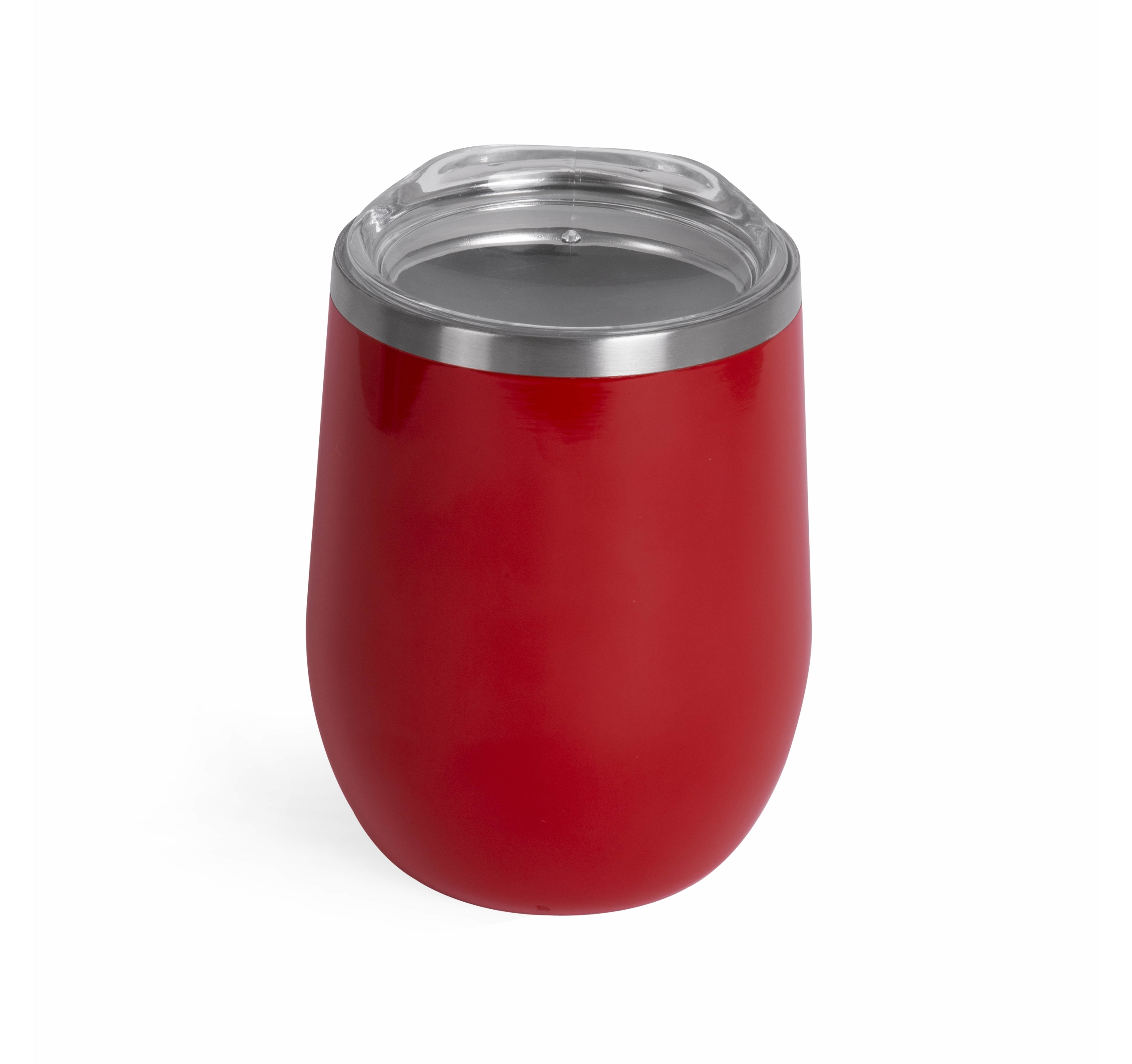Металева термочашка з подвійними стійками з нержавіючої сталі ( глянцеве покриття емаль) і пластиковою прозорою кришкою з отвором. Кришку можна мити в посудомийній машині. Корпус мити тільки вручну, щоб не пошкодити кольорове покриття. Підтримує температуру напою протягом 6-ти годин. Висота:11,5 см. Діаметр: 9 см.